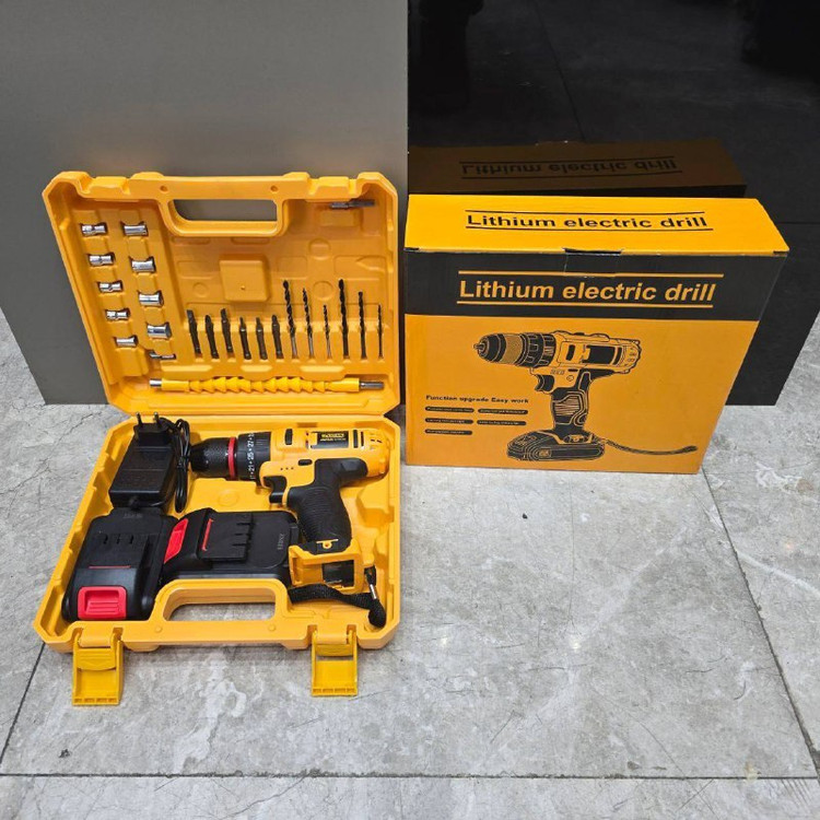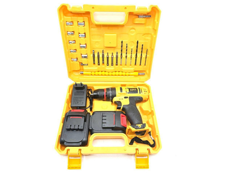 اقلام همراه: مته آهن( سایز ۴، ۵ و ۶ میلیمتر)، مته چوب( سایز ۴، ۵ و ۶ میلیمتر)، رابط فنری تاشونده، سه عدد نوک پیچ گوشتی دوسو، سه عدد چهارسو، ۹ عدد بکس، و تبدیل بکس خور سر دریلی سایز ۱/۴