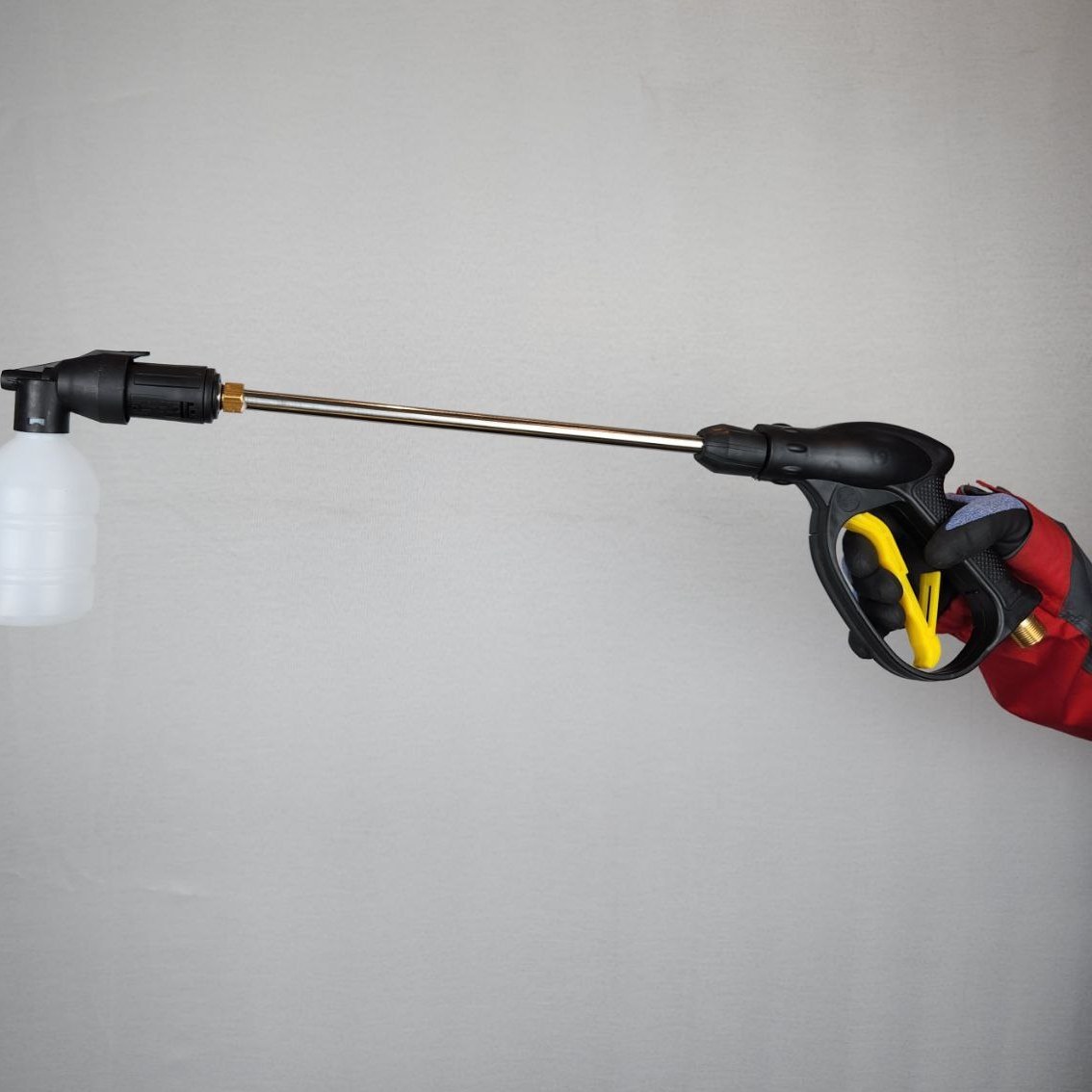 xدارای گان و میله گان، شلنگ فشار قوی بلند، شلنگ مکش، یک عدد اتصالات ورودی، یک عدد فیلتر بزرگ، یک عدد بطری شوینده قابل اتصال به گان می باشد