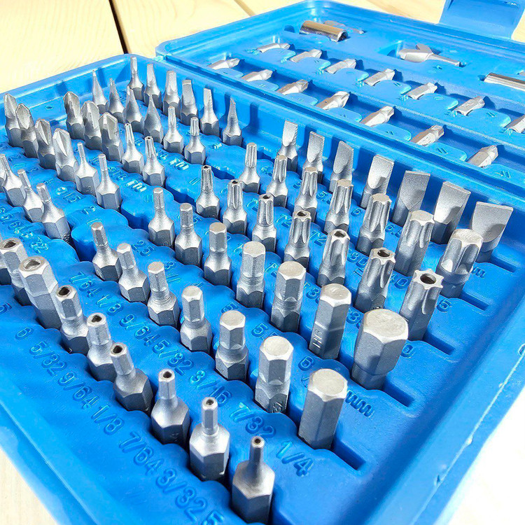 ۱۶ عدد چهارسو در سایزهای مختلف ۹ عدد دوسو در سایزهای مختلف ۹ عدد ستاره تو پر ۹ عدد ستاره تو خالی ۱۹ عدد آلن تو پر ۱۲ عدد آلن تو خالی چهار عدد چاک دار چهار عدد سه سو تبدیل نوک پیچ گوشتی به بکس پایه کوتاه تبدیل نوک پیچ گوشتی به بکس پایه بلند تبدیل افزایش طول نوک پیچ گوشتی آچار هرمی تبدیل بکس به نوک پیچ گوشتی